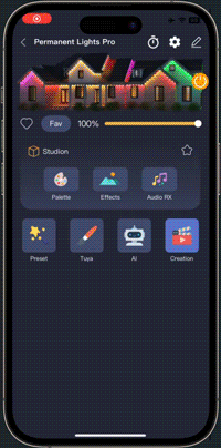 Creation is the creative hub of ASAHOM Permanent Outdoor Lights, allowing you to combine up to 6 lighting effects, set the duration for each effect and the transition time, and choose between sequential or random playback for a unique lighting experience.